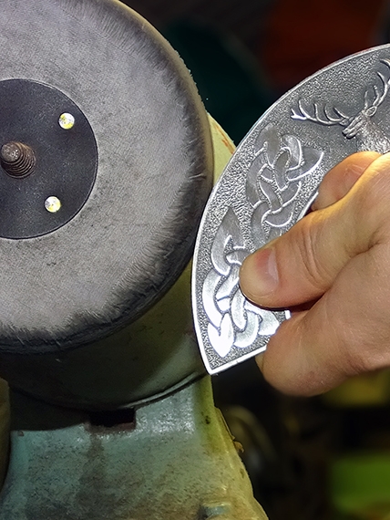 Polishing - From the mould the raw casting is cleaned on a sanding wheel and then polished to a mirror finish.